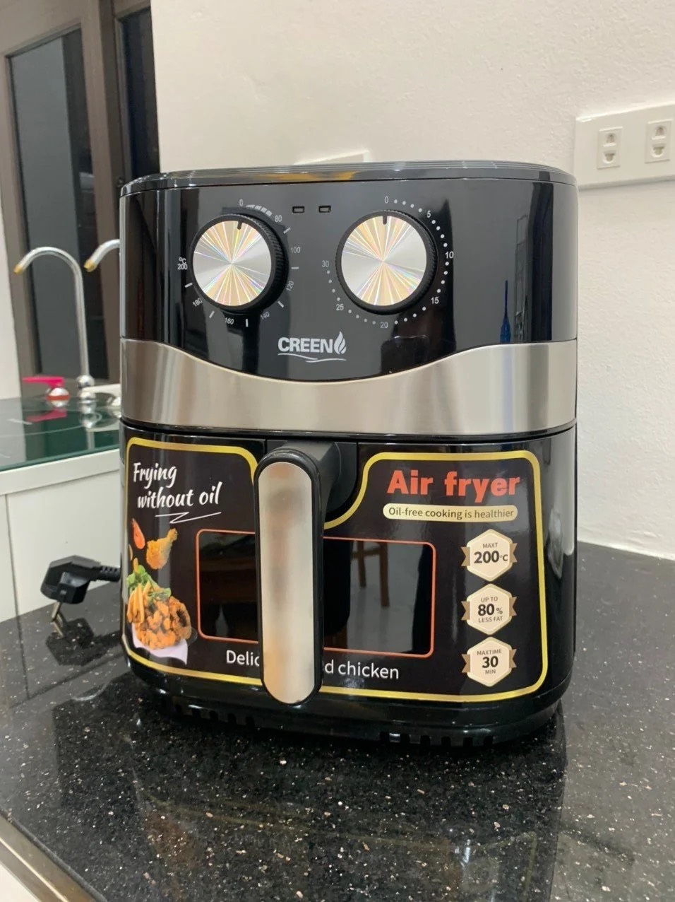 Lòng nồi rộng dùng chiên nướng thực phẩm không cần dầu, hấp rau củ bọc giấy bạc, rã đông thực phẩm thoải mái.